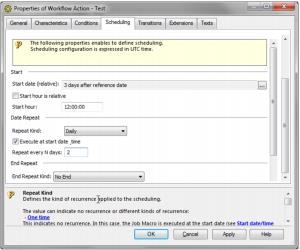 The scheduling property page is a graphical layer over the scheduling XML text format that enables easy edition/display of scheduling configurations.