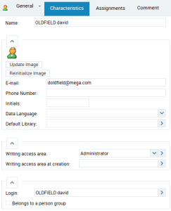 • user writing access at creation via the drop-down menu in the Writing Access Area field.