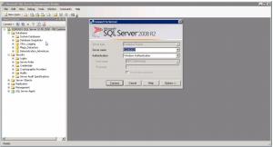 3. If your Windows account is the one having the sysadmin right, stay in « Windows Authentication » mode. Otherwise, switch to “SQL Server Authentication”, and provide the username and password. The field “Server Name” is the name of the instance.