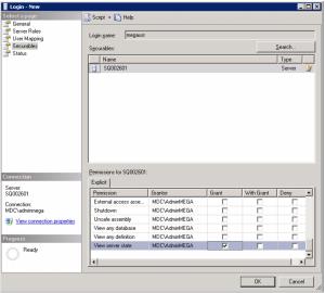 14. In the Explicit tab, for the View Server state permission select « Grant ».