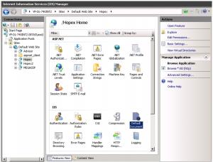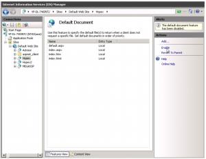 5. Make sure that the « Default Document » feature is enabled for the Hopex/Hopex2/Advisor web applications. Since it was disabled at the root level, you will have to :