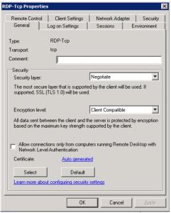 On a server hosted on a Windows 2008 R2 Operating System, you can secure the RDP layer by changing the security layer and the encryption layer of the Remote Desktop Protocol.