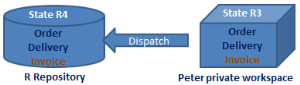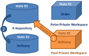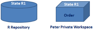 • Peter opens a private workspace, his repository view is state "n" (R1).