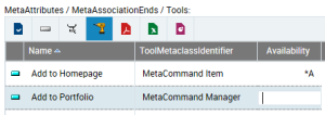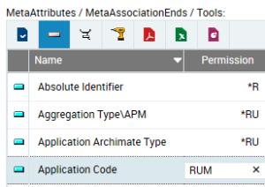 In the MetaAttributes/MetaAssociationEnds/Tools frame, the values of permissions of elements of the MetaClass are also modified.