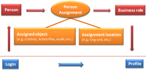Business roles are assigned to persons or person groups. The assignment manages the link between person or person group and business role.
