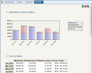 A report automatically displays the global costs of applications contained in a portfolio.