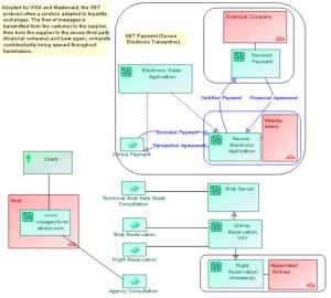 SET (Secure Electronic Transaction) is a protocol enabling secure interchanges between the customer, the enterprise and the financial company. It has been adopted by Visa and Mastercard.