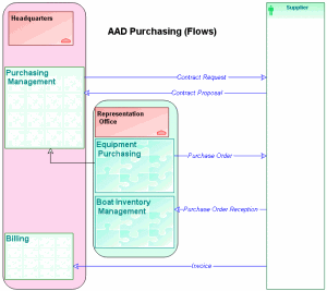 The "Purchasing Management System - AAD Purchasing (Flows)" diagram presents: