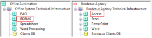 In the above example, to indicate that the RDBMS required corresponds to Access in the agency, you must select the RDBMS on the left, then that of the agency on the right, and create a mapping from the latter.