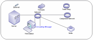 The messages sent between applications or external org-units that travel across the network are also indicated.