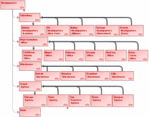 The site tree is a HOPEX IT Architecture diagram that enables tree description of a site. Focusing on a particular site, this type of diagram enables summary representation of site breakdown into sub-sites.