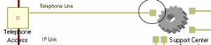 For example, in the case of a support center, the "Telephone Line" communication channel connects the "Telephone Access" communication port to the general infrastructure of the support center.