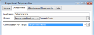 From the properties dialog box of the communication element point, you can see that "Telephone Line" is connected to the artifact via the "Telephone Switch" communication port.