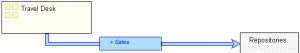 You can directly specify the content of the information carried by each channel in the Exchanged Contents tab of its properties dialog box. These contents correspond to information authorized to transit between two areas. Contents can be added in the channel direction (descending) or in the opposite direction. You can choose to use a single channel by positioning authorized contents in both directions, or to use two different channels for which only contents in descending direction are indicated. The latter solution is graphically clearer but creates more channels between the areas.