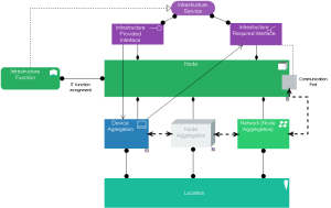 The Node infrastructure viewpoint contains the computing and communication hardware infrastructure elements supporting the application layer, such as physical devices or networks.