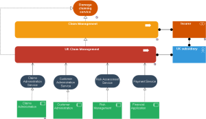 The Service Realization viewpoint is used to show how one business service is realized by the underlying processes (and sometimes by application components). Thus, it forms the bridge between the business products viewpoint and the business process view. It provides a “view from the outside” on one or more business processes.