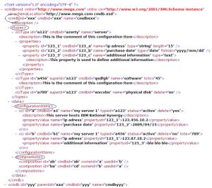 First elements described in the file are CMDBs, which contain configuration item types and configuration items.