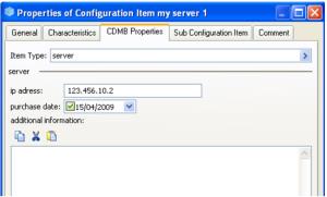 Example of CMDB properties of a configuration item of "Server" type