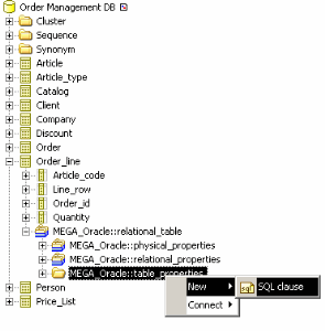 6. On the "MEGA_Oracle::hash_partitioning" folder, create the clause "Order_line/hash_partitioning".