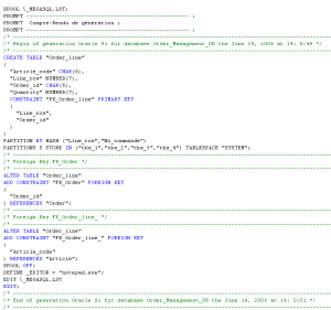 When object customization has been completed, you can generate the corresponding script file to consult the results, without having to regenerate the entire database.