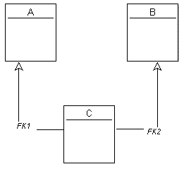 This denormalization enables transformation of a foreign key to a table. A new table and two new foreign keys are created. The original foreign key is deleted.