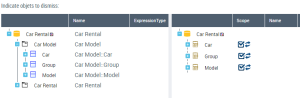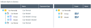 The "Car" entity however is not taken into account in the scope since it cannot act on the "Model" table.