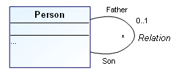 “Father” and “Son” are the two roles played by the “Person” entity in the “Parent” association.