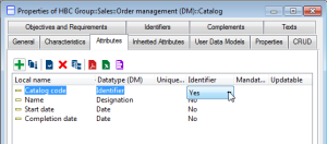 To do this, in the Attributes tab of the entity properties dialog box, select value "Yes" for the Identifier characteristic of the selected attribute.