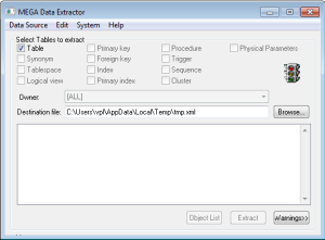 1. In the HOPEX installation folder, under the "Utilities\MEGA Data Extractor" folder, run the mgwdbx32.exe extraction utility.