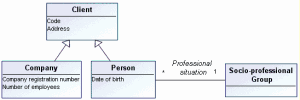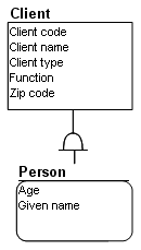 In the above example, attributes are interesting on persons that are of no avail for other categories of clients. The subtype entity is represented by a rounded corner box.