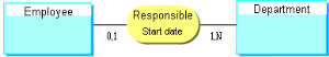 To model that an "employee" is responsible for a "service" and to specify the "start date" of his or her functions, the following data model is created, where start date is a property of the association.
