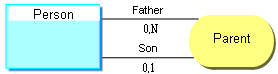 “Father” and “Son” are the two roles played by the “Person” entity in the “Parent” association.