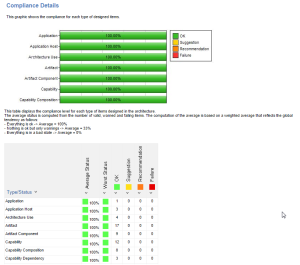 The next section details the level of compliance for the different types of architecture objects.
