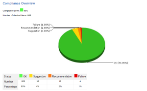 • A pie chart with the status percentages: OK, Suggestion, Recommendation, Failure