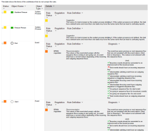 • If the object complies with all its set "requirement" and "recommendation" rules but does not comply with at least one "suggestion" rule, it is given the Suggestion status.