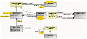 From the enterprise master plan defined in theNAV-1 metamodel, it is possible to refine the definition by inserting capability planning. Both the master plans and the milestones that divide enterprise life into sub-sections can be linked to goals that describe the expectations over a duration of time.