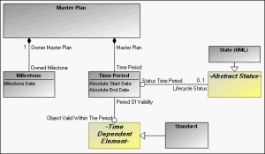 The StdV-2 model is based on master plans that can be used to plan and forecast. As standards are time-dependent objects time periods can be linked to them and placed into master plans of standards. The time periods represent moments in the "lifetime" of the standard and so they can be linked to states (UML states) that are appropriate for the standard objects.