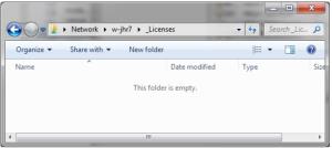 • The license folder must be accessible as a UNC address, meaning a shared folder with one unique address on the network.