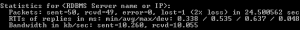If the value returned for “RTTs of replies in ms/avg” (0.535 in the example) is higher than 1 ms, contact MEGA. See hrPING help for details on this command.