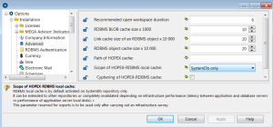 5. In the right pane, for the Scope of HOPEX-RDBMS local cache option, use the drop-down list to modify the range of that cache: