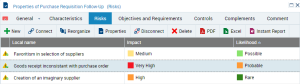 Risks associated with a process are visible in the Risks tab of the properties dialog box of the process.