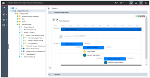 An enterprise plan is itself an enterprise stage; it is therefore possible in HOPEX Business Architecture to define business capabilities and enterprise models for courses of action directly at the level of the root enterprise plan, and refine the iterative roadmap drill down into the subsequent stage levels.