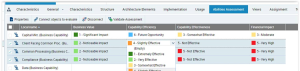 From an enterprise stage or enterprise plan, it is possible to assess the business capabilities of the business capability map connected to the current stage.