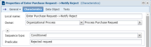 If several conditioned sequence flows are from the same operation, you can specify that one of these should be used as default. For example, having completed the "Enter Purchase Request" operation, the assistant always executes the "Finalize Request" operation, except if the request is not acceptable and is below a given amount.