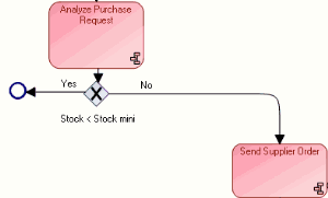 The following example presents a case where continuation of processing is conditioned: following analysis of a purchase request, the process either ends, or an order is sent to a supplier.