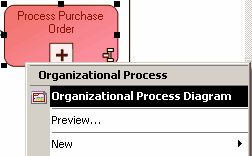 2. Click the arrow at the right of the Organizational Process field and select Connect Organizational Process in the drop-down list.