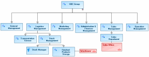 An organizational chart provides an overview of the enterprise structure. HOPEX Business Process Analysis allows you to design your organizational charts using the same tools and methods as applied to processes.