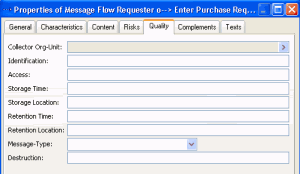 The other fields allow you to enter additional indications for messages of “Quality record” type that are particularly important in documentation of your quality system. Here you can define the controls needed for identification, storage, retention time, etc.
