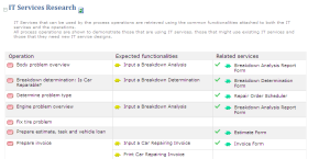 IT services that can be used by process operations are found using common functionalities attached to services and operations.