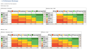 • Performance: this characteristic is a global assessment of process performance. It is calculated from assessment of process business value, effectiveness and risk.